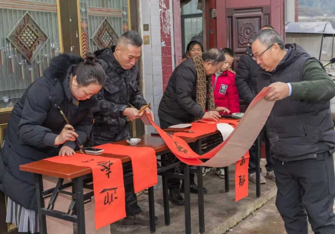 与此同时,习水县退役军人中的书法爱好者组成的志愿服务队,正怀揣笔墨辗转军人和退役军人家庭,现场书写春联。一笔一画间,既有传统文化的韵味,又饱含着真挚的祝福,传递着尊崇军人、关爱退役军人的社会风尚,让这个春节情意更浓、暖意更融。
